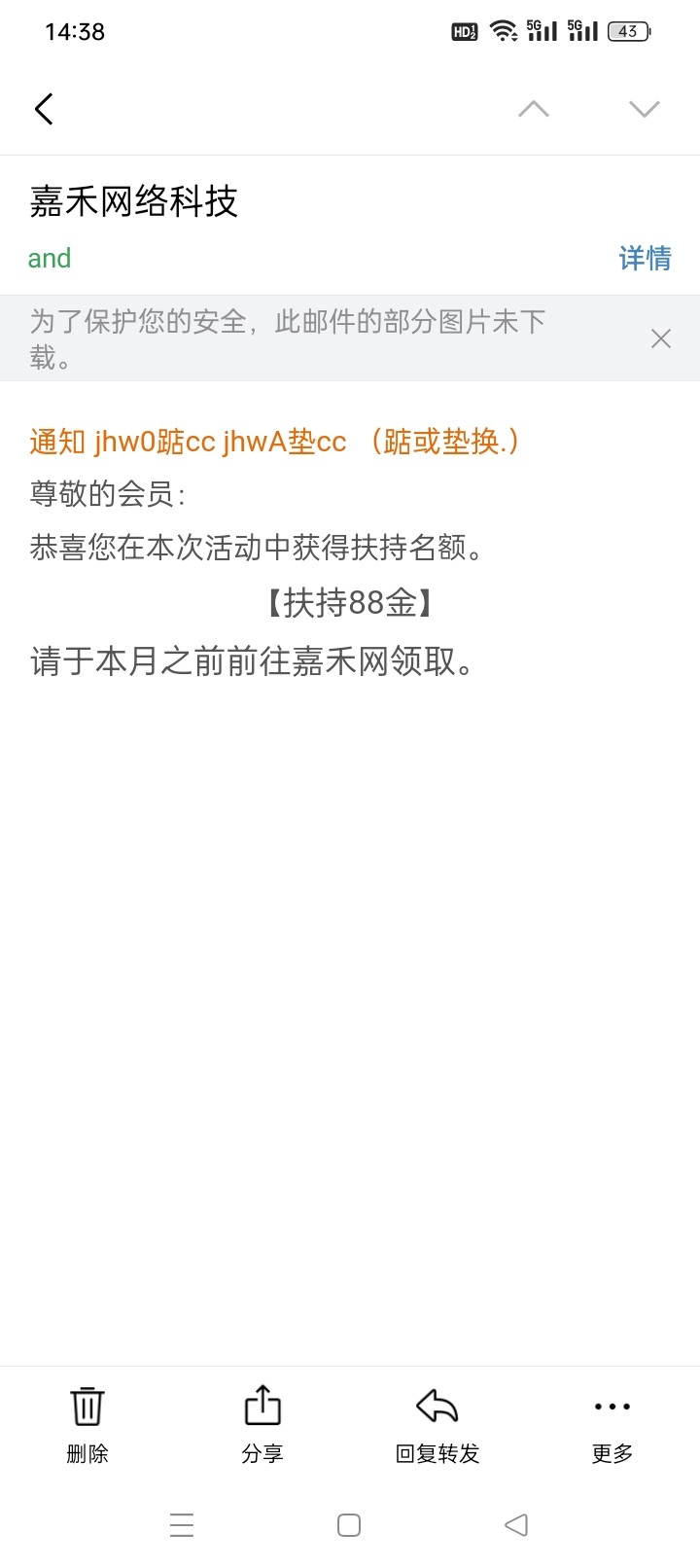 dys118,收到邮件说找嘉禾网领88