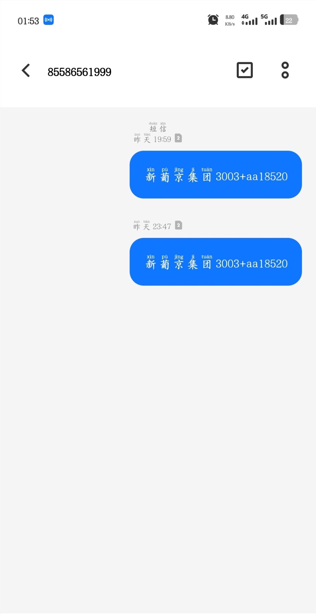 下载注册发短信送58 八点发的短信 差不多十一点才收到 地址 1966.com 3003.com 1992.com