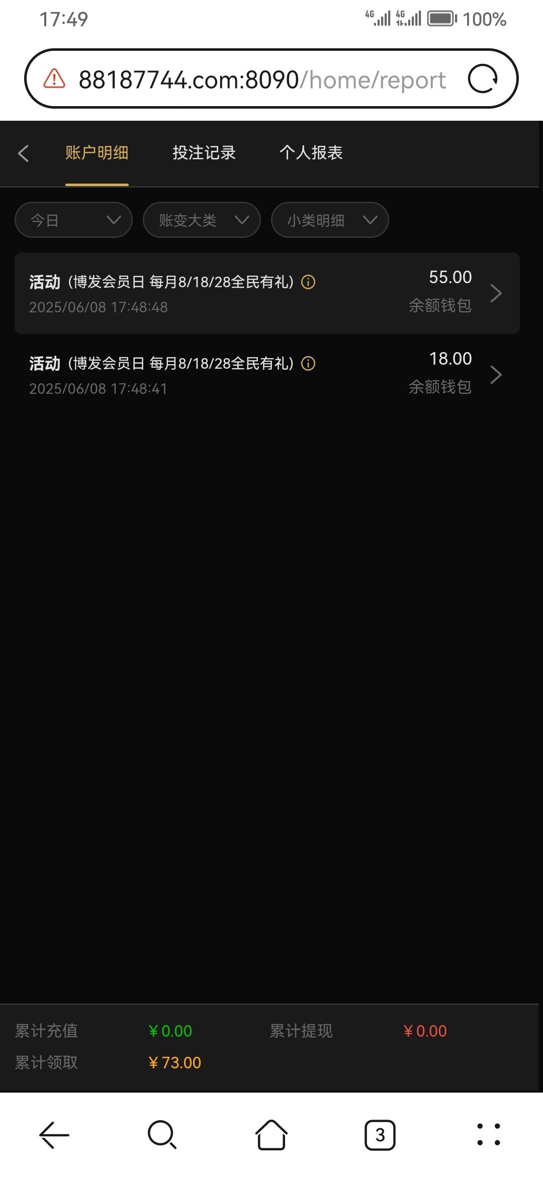 博发 8818.com 逢八彩金有号的上号,看看 我领了73。