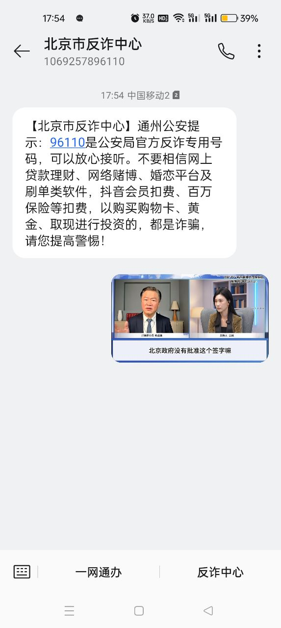 移动卡会收到,我没用移动卡注册,用他的流量打开过了几天反诈中心就给我打电话了,我用的联通注册的一点事没有