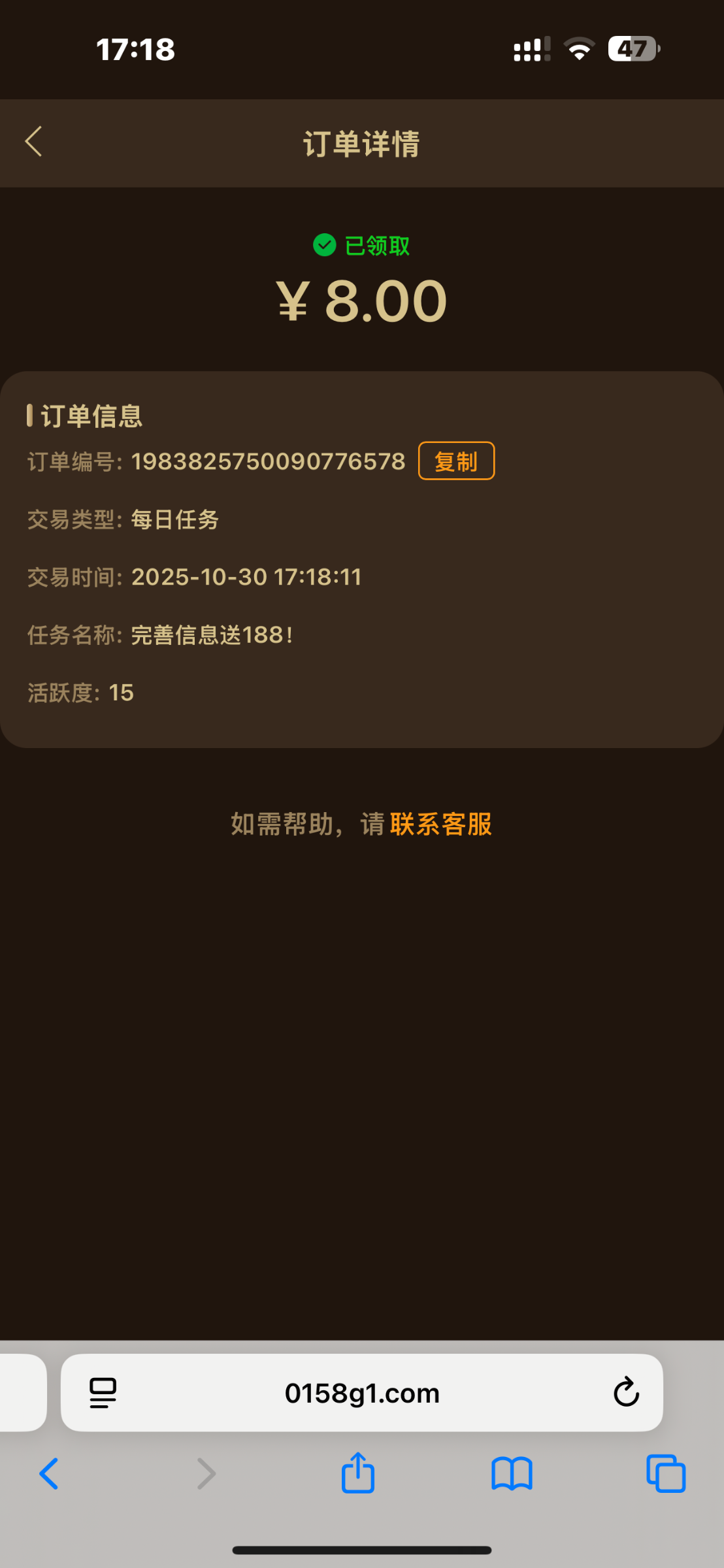 注册优惠里每日任务里完善信息,半个小时送8