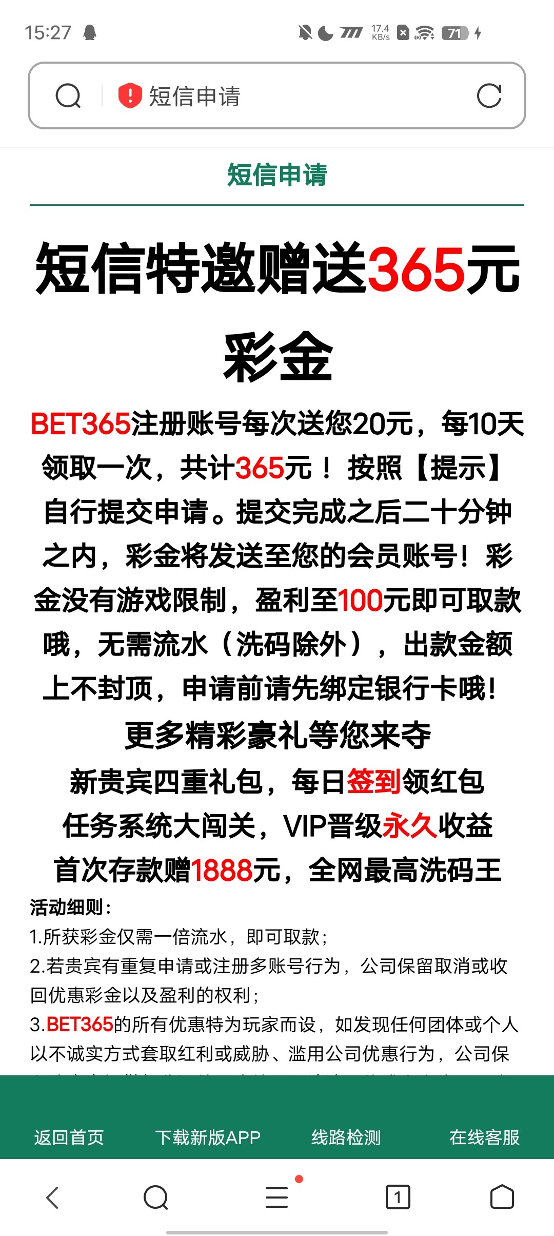 点击申请彩金