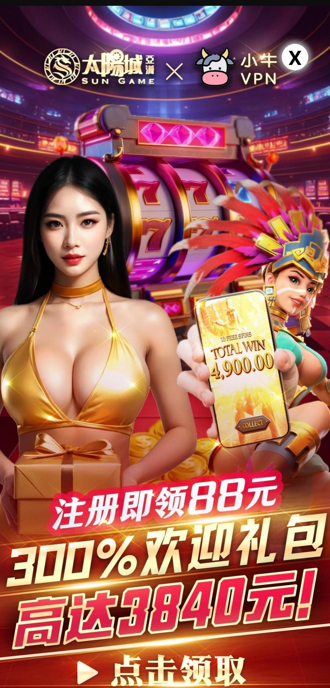 小牛VPN联手太阳城送88彩金 不需要开会员