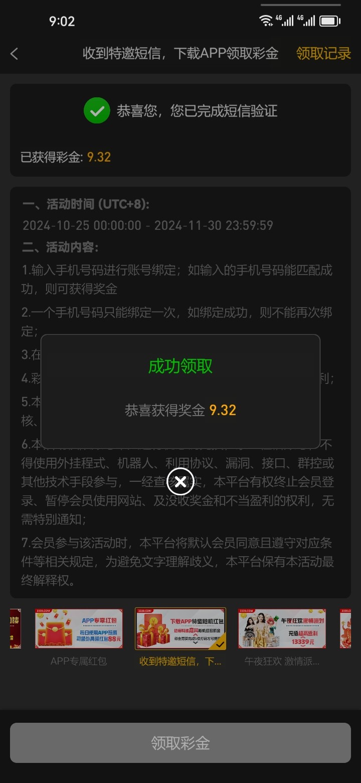 短信特邀领取了11块多 澳门永利收到短信的注册好下载app领取彩金。不限制游戏