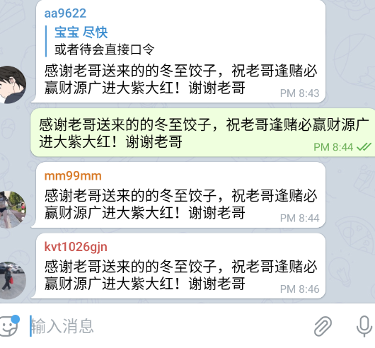 感谢老哥送来的的冬至饺子,祝老哥逢赌必赢财源广进大紫大红!谢谢老哥